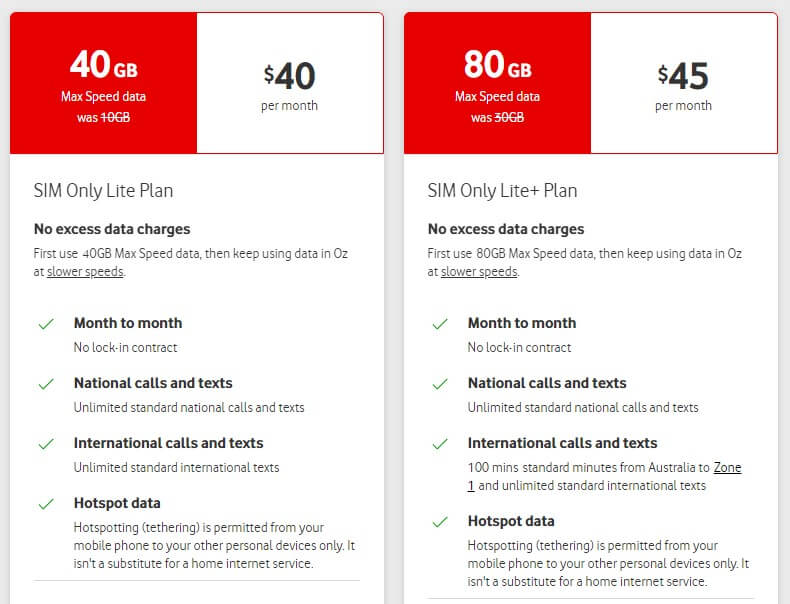 보다폰 호주 홈페이지 https://www.vodafone.com.au/plans/sim-only 혹은